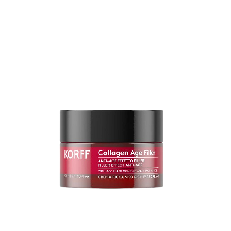Korff Collagen Age Filler Rich Face Cream je bogata i hranjiva krema dizajnirana za zrelu kožu koja traži intenzivnu obnovu i dubinsku hidrataciju. Formula obogaćena kolagenom i aktivnim sastojcima pomaže u popunjavanju dubokih bora, poboljšava čvrstoću kože i vraća joj mladenačku elastičnost. Kremu odlikuje luksuzna tekstura koja dubinski hrani i štiti kožu, ostavljajući je glatkom, mekom i vidljivo pomlađenom.