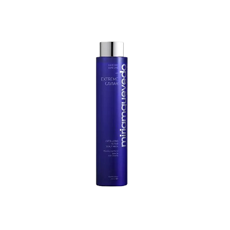 Miriam Quevedo Extreme Exfoliating Scrub Scalp Mask je luksuzna eksfolirajuća maska za vlasište koja dubinski čisti, detoksificira i revitalizira kožu glave, potičući zdrav rast kose. Formulirana s kavijarom, vulkanskim kamenom, salicilnom kiselinom i organskim ugljenom, nježno uklanja nečistoće, višak sebuma i ostatke proizvoda, dok istovremeno potiče mikrocirkulaciju i obnavlja ravnotežu vlasišta. Ova inovativna maska djeluje kao tretman za osvježenje i reset vlasišta, ostavljajući ga savršeno čistim, umirenim i pripremljenim za optimalnu apsorpciju aktivnih sastojaka iz ostatka rutine njege kose.